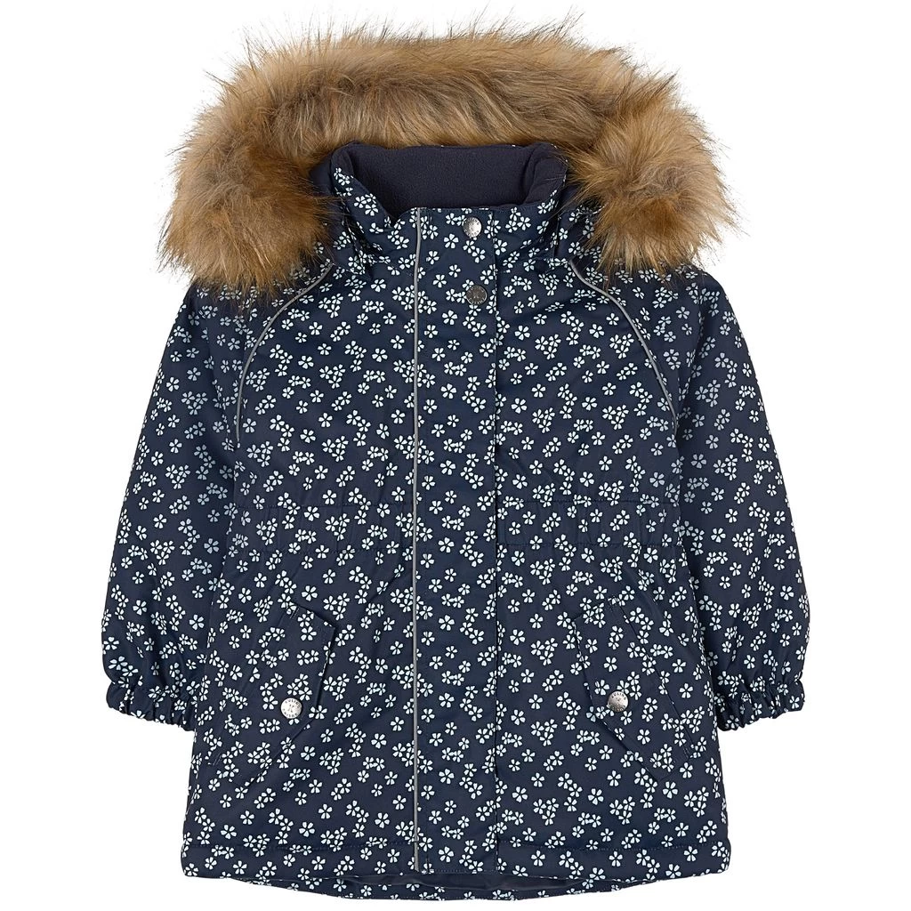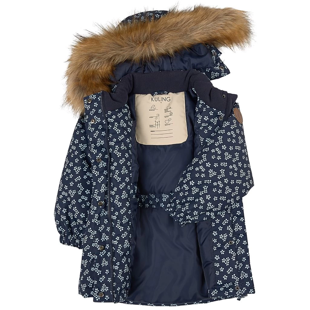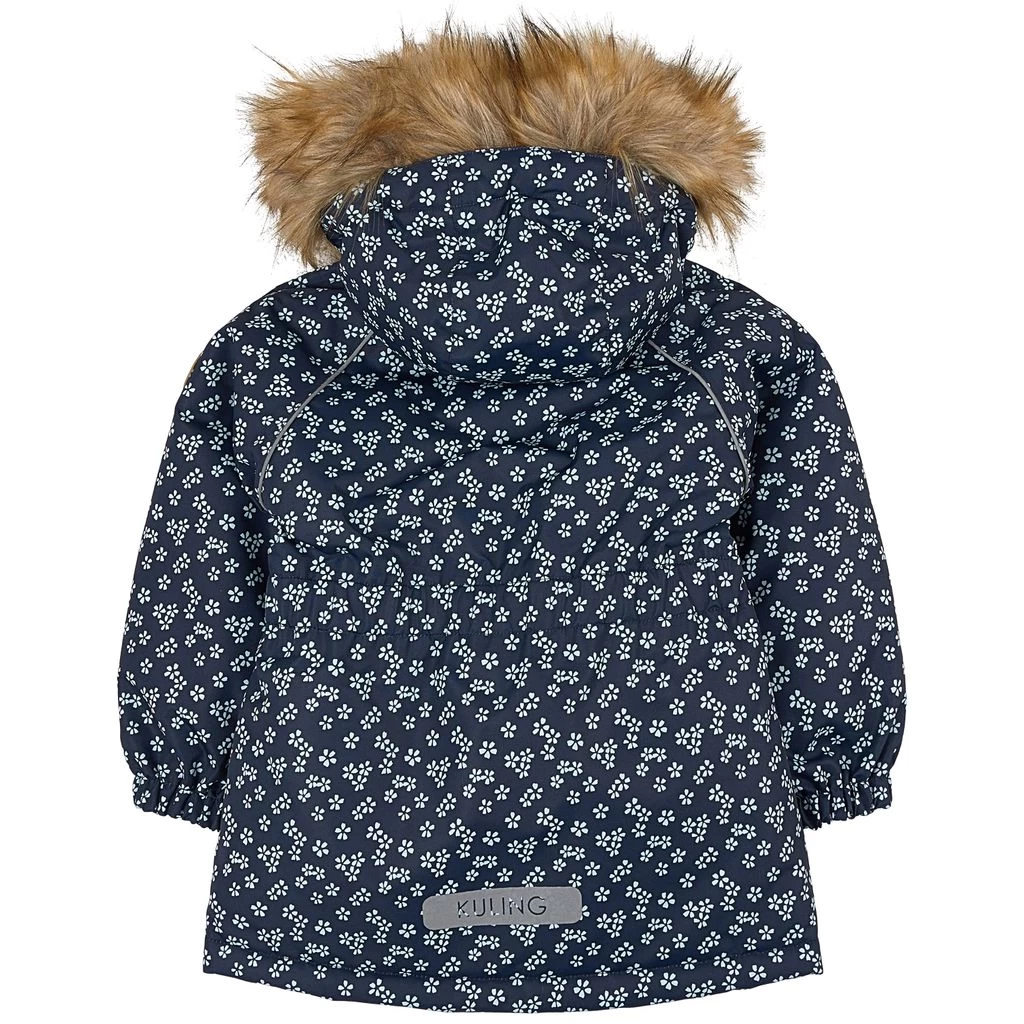 Be warm and comfy on winter adventures. Alberta parka by Kuling. The jacket has taped seams. It has warm padding, a detachable hood with detachable faux fur trim, a zip closure at the front, an adjustable waist, two front pockets, elasticated cuffs and reflective details for visibility.