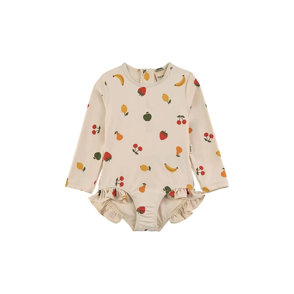 Go for a swim style and comfort. Cream Antibes swimsuit by Kuling. The swimsuit has a quick-drying, stretchy material.