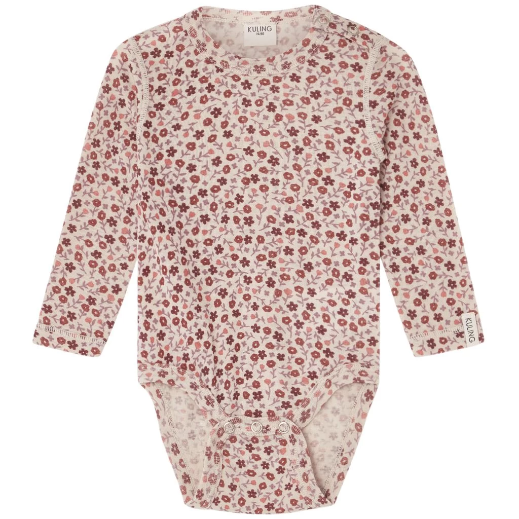 This wool baby body is a stylish first choice for cold days. Pink Brisbane baby body by Kuling. The baby body has snap buttons at the shoulder and between the legs.