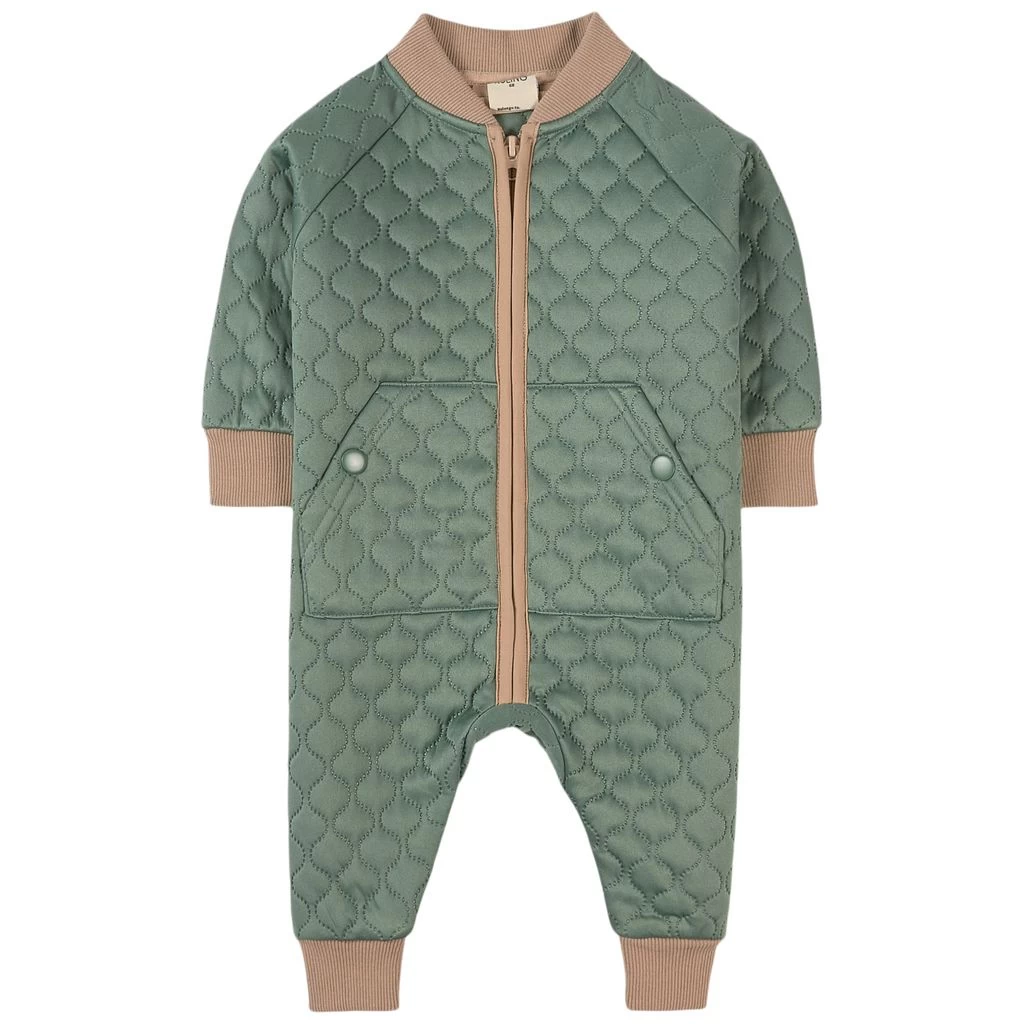 Busan coveralls by Kuling. The coveralls have a quilted design. They have a zip closure at the front, a split kangaroo pocket and ribbed cuffs.
