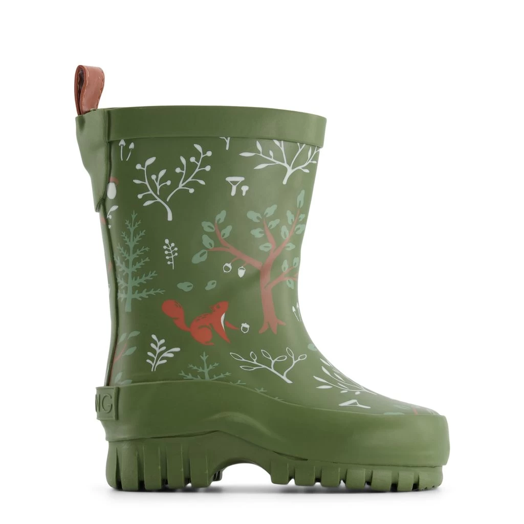Time to jump through puddles. Green Caracas rain boots by Kuling. The boots have welded seams. They have a rubber upper, a bonded lining, removable insoles, a sole with rough tread for a sure step and a pull tab at the back.