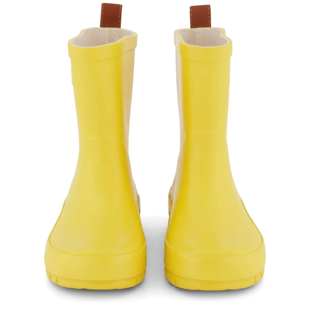Time to jump through puddles. Yellow Caracas rain boots by Kuling. The boots have welded seams. They have a rubber upper, a bonded lining, removable insoles, a sole with rough tread for a sure step and a pull tab at the back.