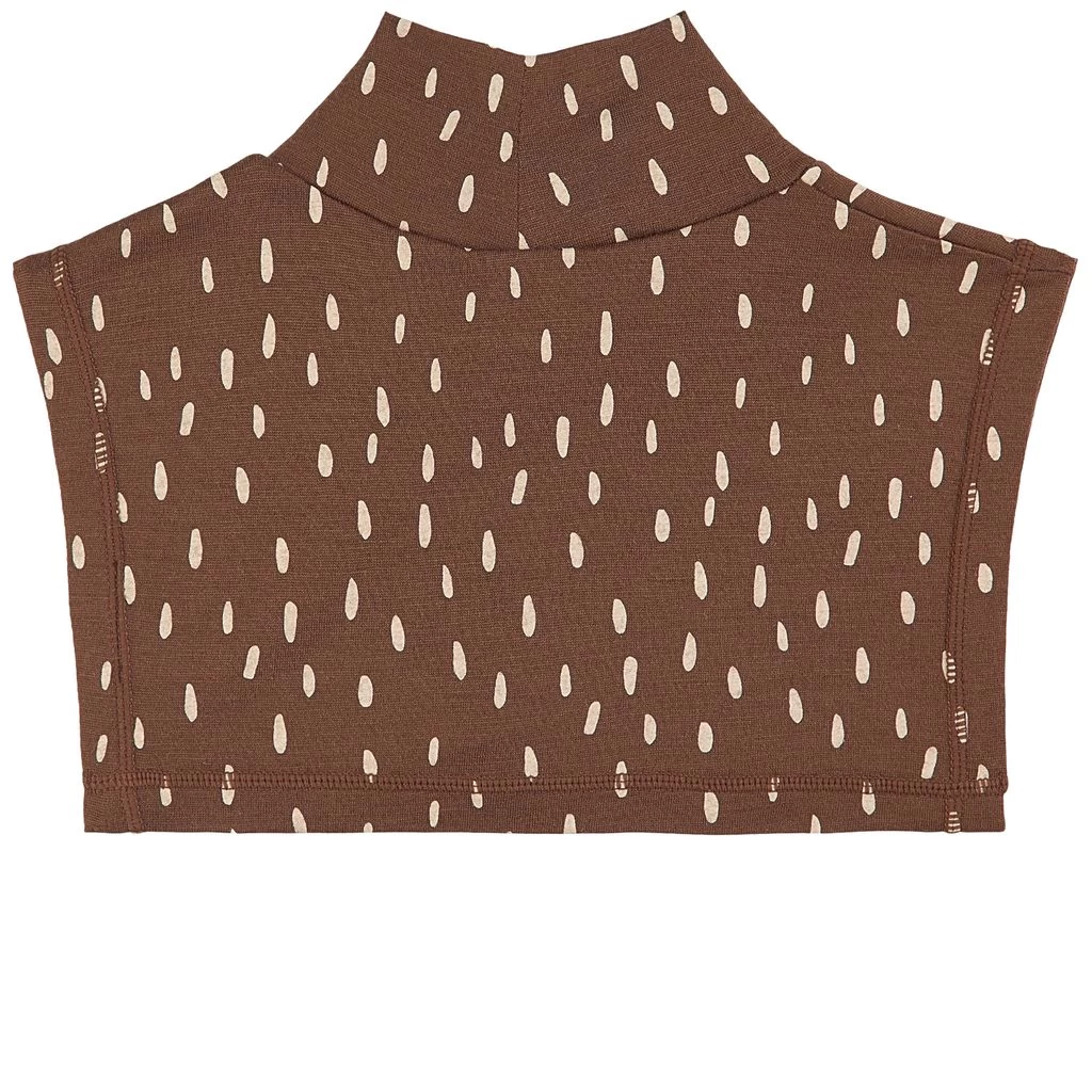 A warm and comfy new addition to your look!. Brown neck warmer by Kuling. The neck warmer has a turtleneck.