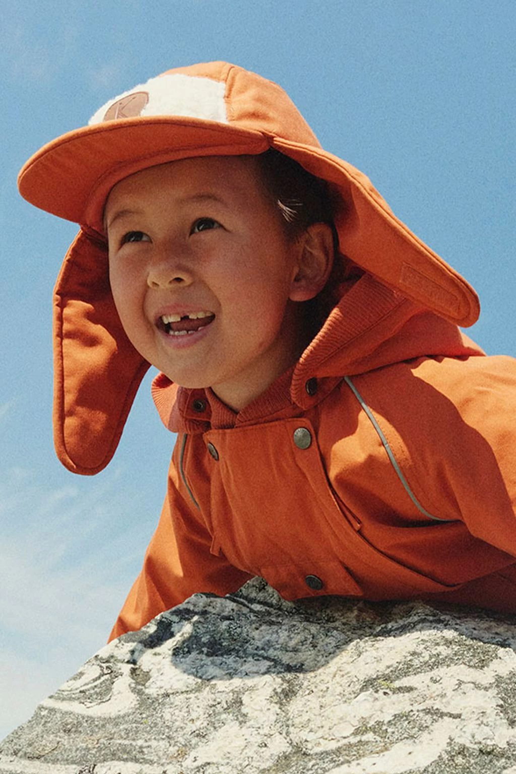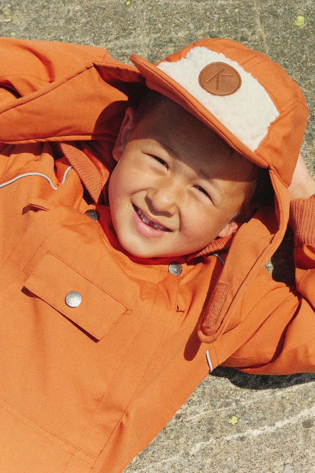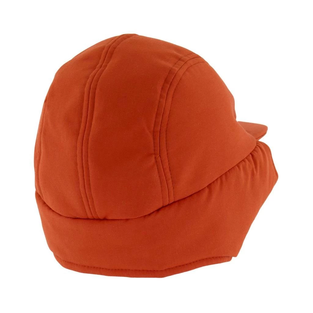 Keep little heads warm. Edmonton shell cap by Kuling. The shell cap has light padding. It has a flat bill, ear flaps with velcro closure at the chin and a teddy fleece at the front.