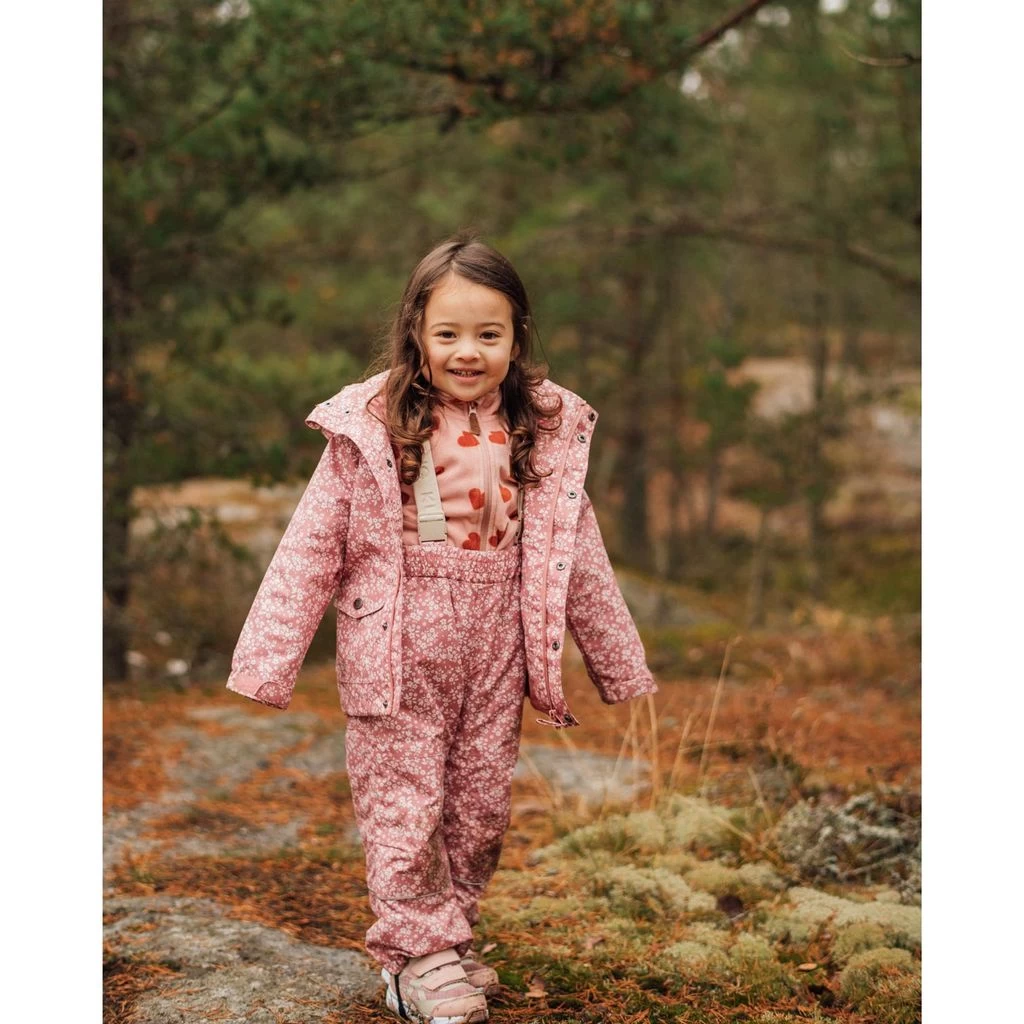 Get ready for outdoor adventures. Pink Going shell trousers by Kuling. The trousers have taped seams. They have adjustable, detachable shoulder straps, two front pockets, elasticated cuffs, adjustable, detachable silicone foot loops and reflective details for visibility.
