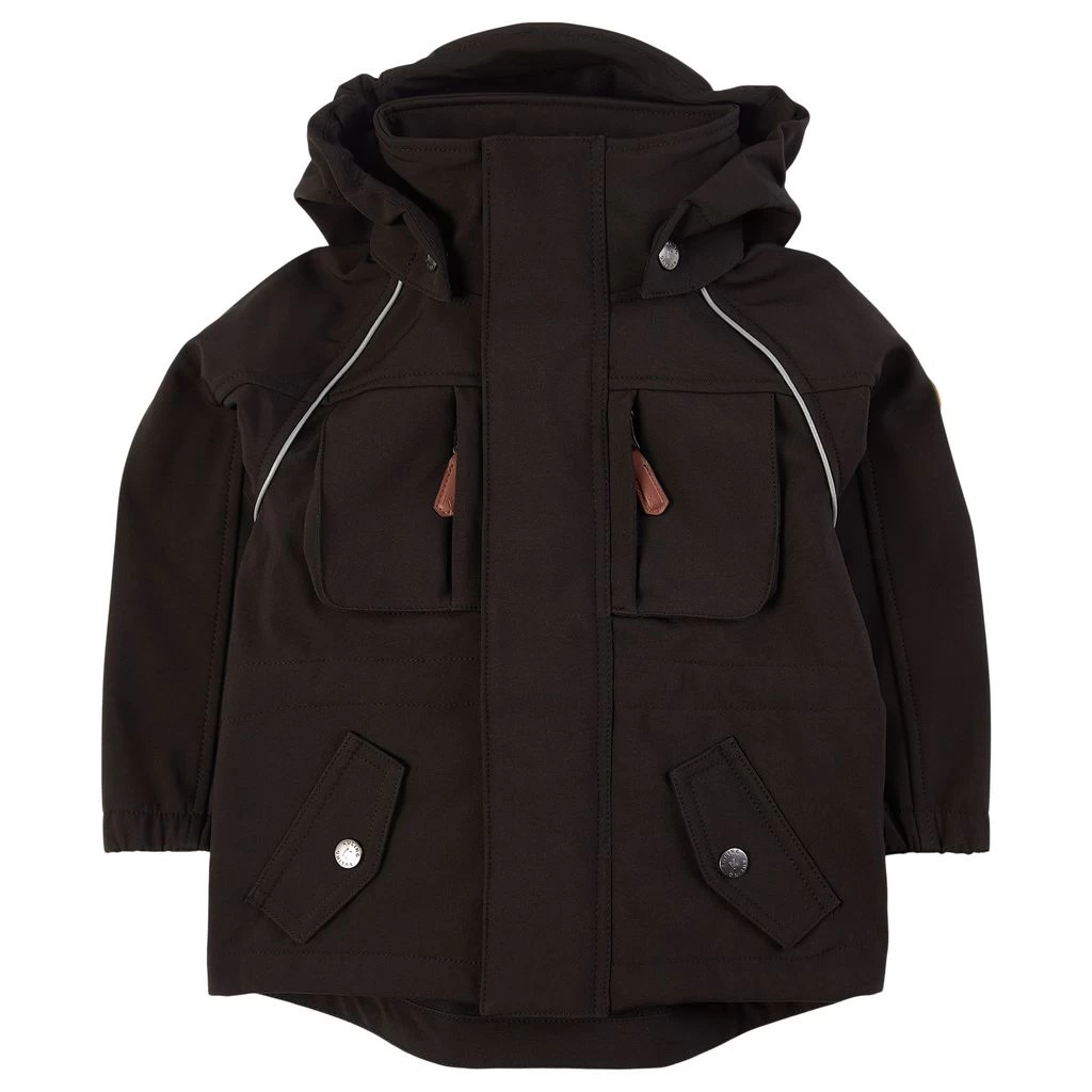 Gothenburg softshell jacket by Kuling. The softshell jacket has taped seams. It has a detachable hood, a zip closure at the front, an adjustable waist, two front pockets and reflective details for visibility.
