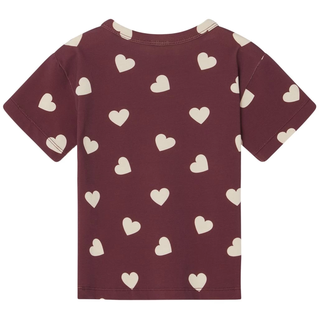 Get ready for play filled days. Red GOTS Santorini T-Shirt by Kuling. The T-Shirt has a regular fit. It has an all-over print with hearts.