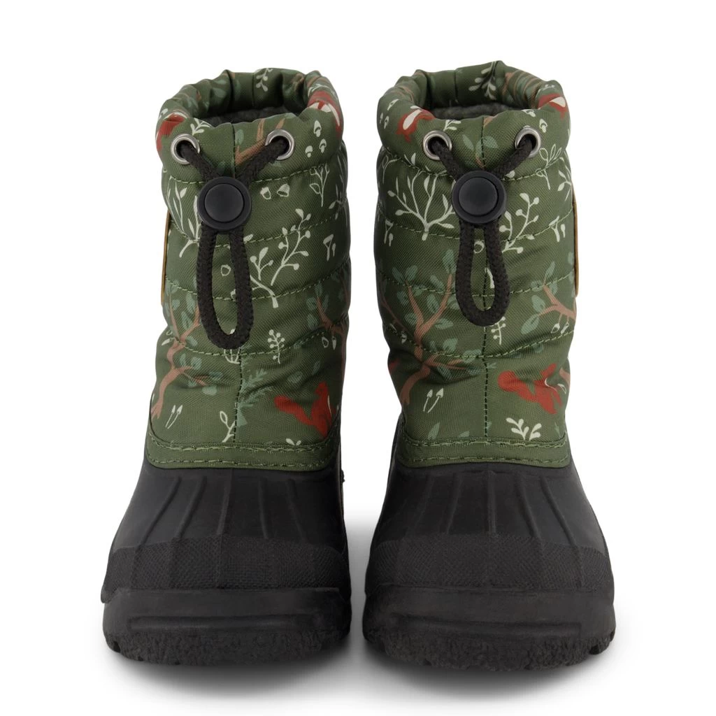 Keep little feet warm. Green Isaberg winter boots by Kuling. The winter boots have an insulated shaft for warmth. They have a cozy pile lining, an adjustable cinch cord at the top, a reflective detail for visibility and soles with rough tread for a sure step.
