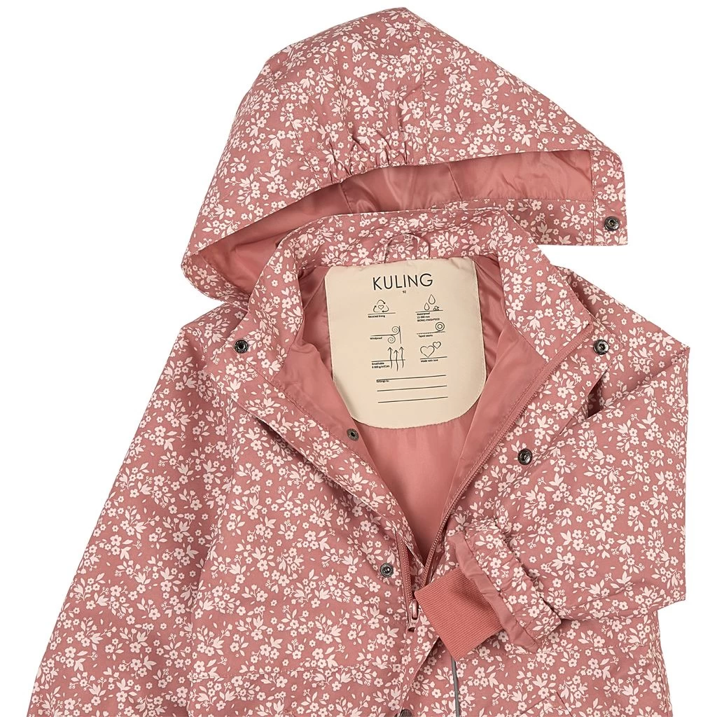 Get ready for outdoor adventures. Pink Kansas shell coverall by Kuling. The shell coverall has taped seams. It has a detachable hood, YKK® zippers at the front, two front pockets, elasticated cuffs, adjustable, detachable silicone foot loops and reflective details for visibility.