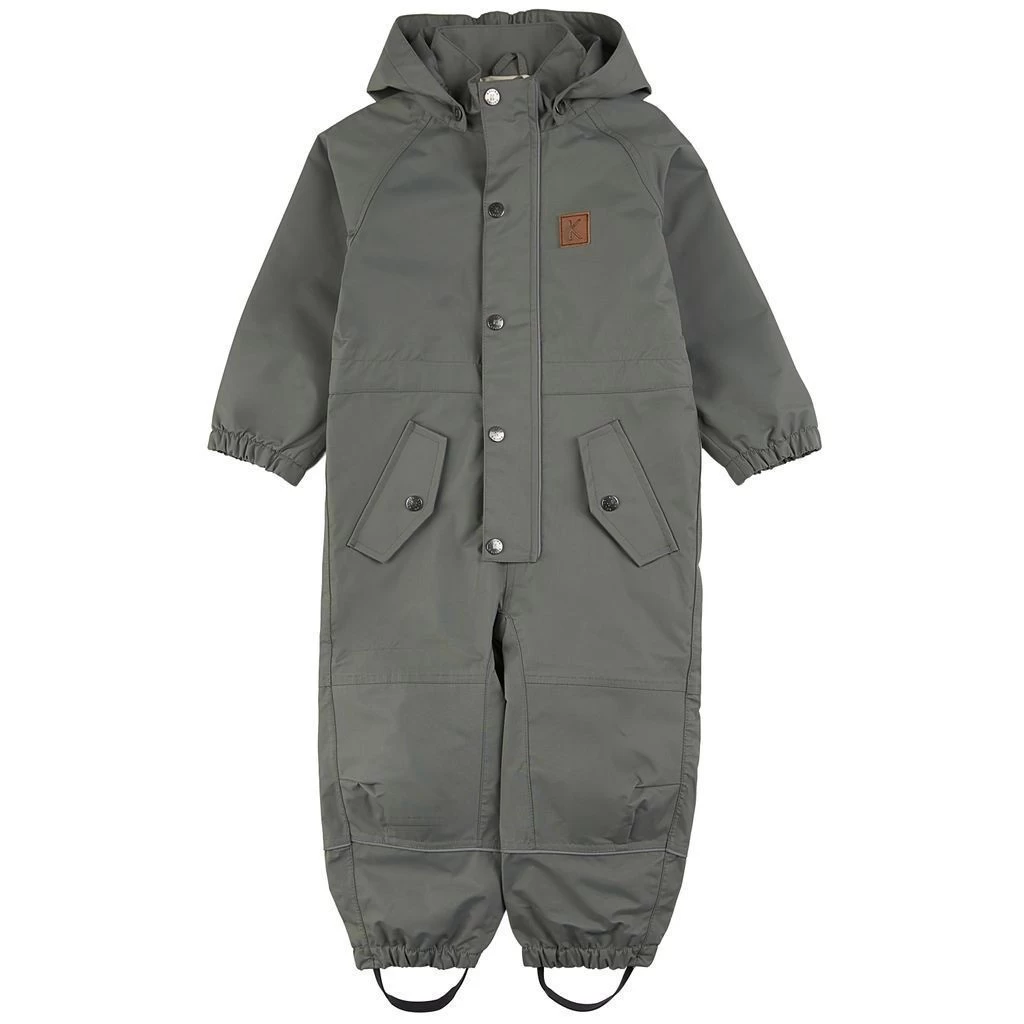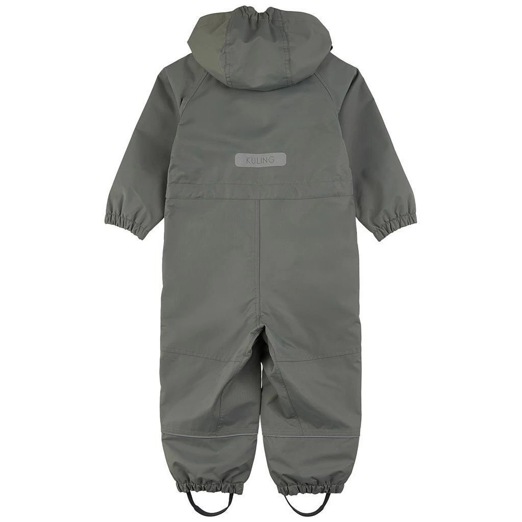 Get ready for outdoor adventures. Green Kansas shell coverall by Kuling. The shell coverall has taped seams. It has a detachable hood, YKK® zippers at the front, two front pockets, elasticated cuffs, adjustable, detachable silicone foot loops and reflective details for visibility.