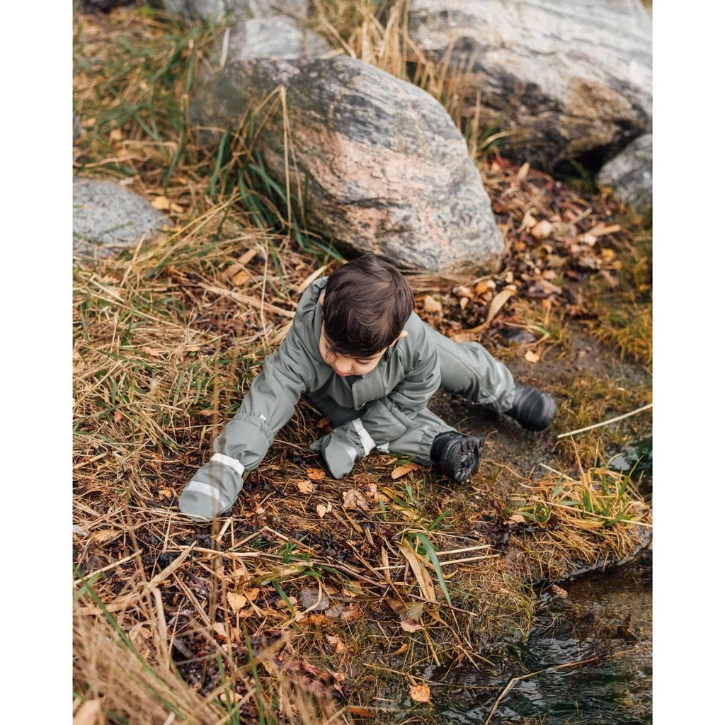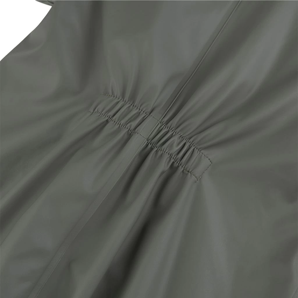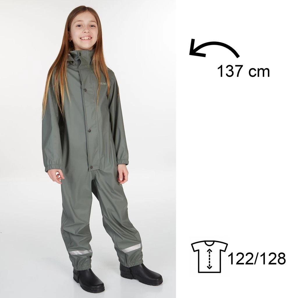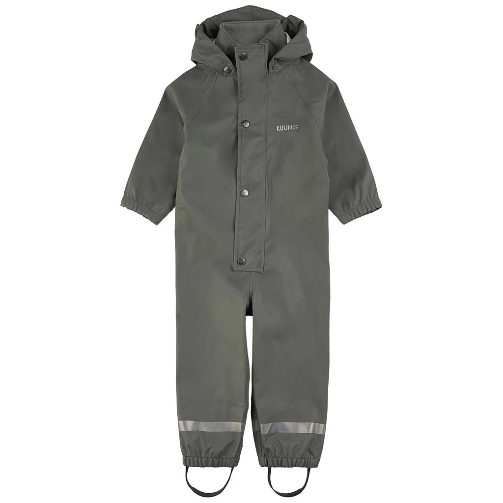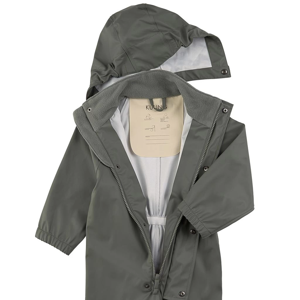 Rainy days won’t stand a chance. Green Leeds rain coverall by Kuling. The coverall has welded seams. It has a detachable hood, a zip closure at the front, elasticated cuffs, detachable, adjustable foot loops and reflective details for visibility.