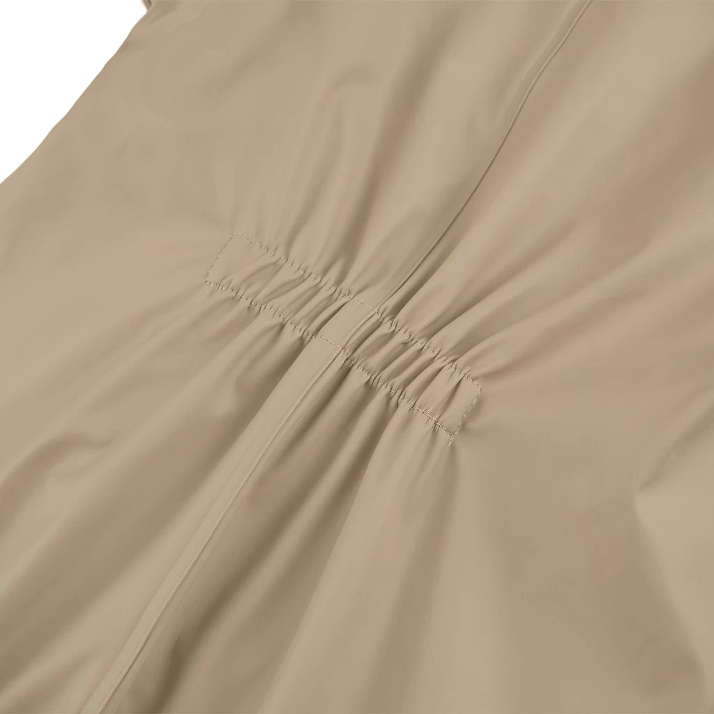 Rainy days won’t stand a chance. Beige Leeds rain coverall by Kuling. The coverall has welded seams. It has a detachable hood, a zip closure at the front, elasticated cuffs, detachable, adjustable foot loops and reflective details for visibility.
