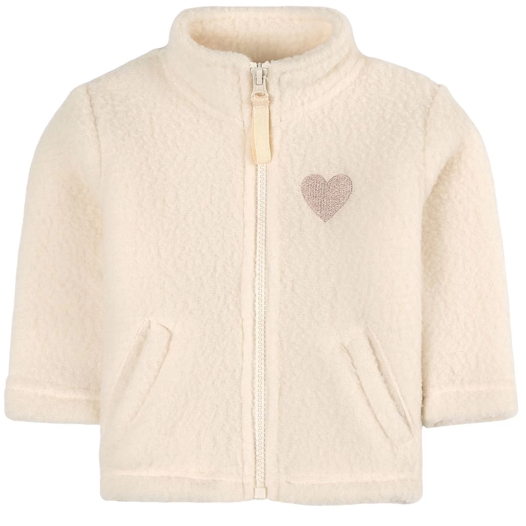 Sand Limited Edition Heart Pile fleece jacket by Kuling. The jacket has a soft fleece material. It has a zip closure at the front, an embroidered heart at the chest and two front pockets.