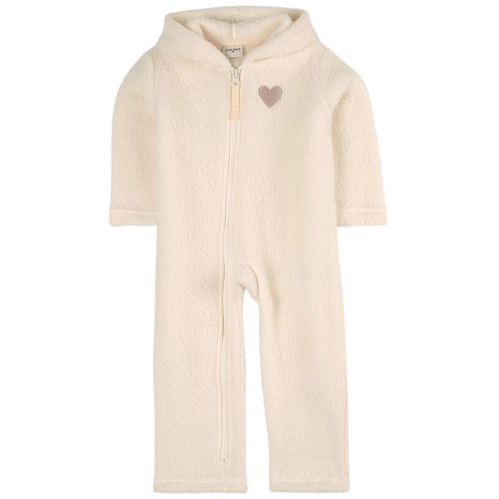 Sand Limited EditionHeart Pile fleece coverall by Kuling. The fleece coverall has a soft fleece material. It has a fixed hood, a zip closure at the front and an embroidered heart at the chest.