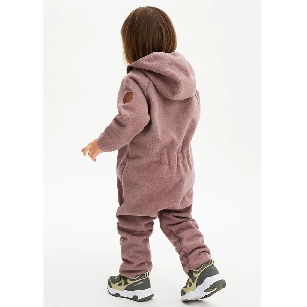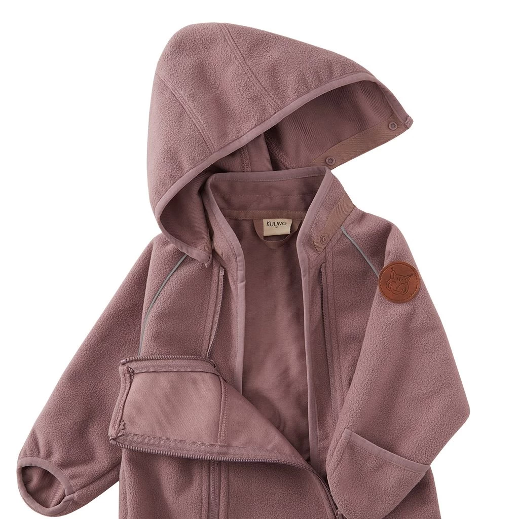 Get ready for outdoor adventures. Purple Livigno coverall by Kuling. The coverall has a detachable hood. It has double zip closures at the front, two front pockets, ribbed cuffs and reflective details for visibility.