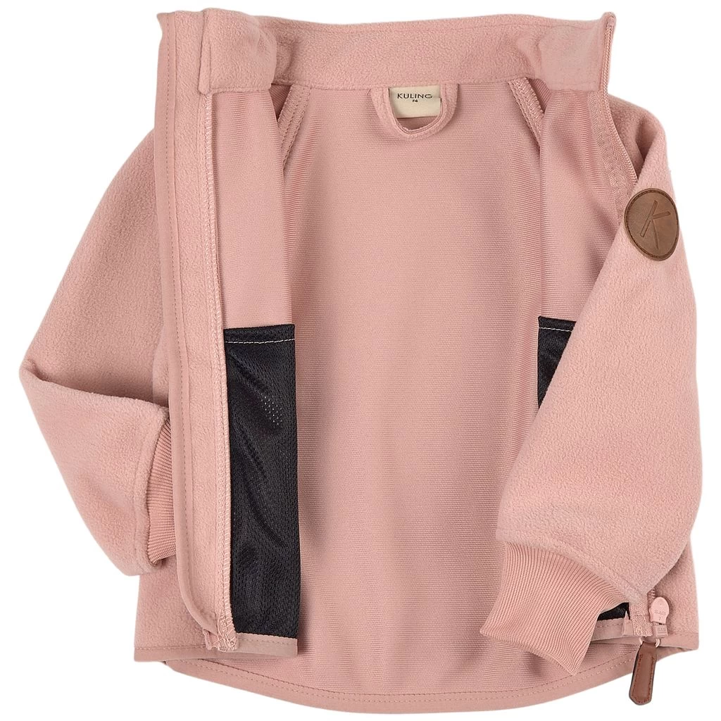 Pink Livigno windfleece jacket by Kuling. The windfleece jacket has a zip closure at the front. It has two front pockets, ribbed cuffs with thumbholes and reflective details for visibility.