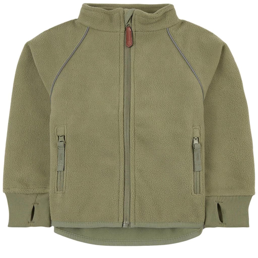 Moss green Livigno wind fleece jacket by Kuling. The wind fleece jacket has a zip closure at the front. It has two front pockets, ribbed cuffs with thumbholes and reflective details for visibility.