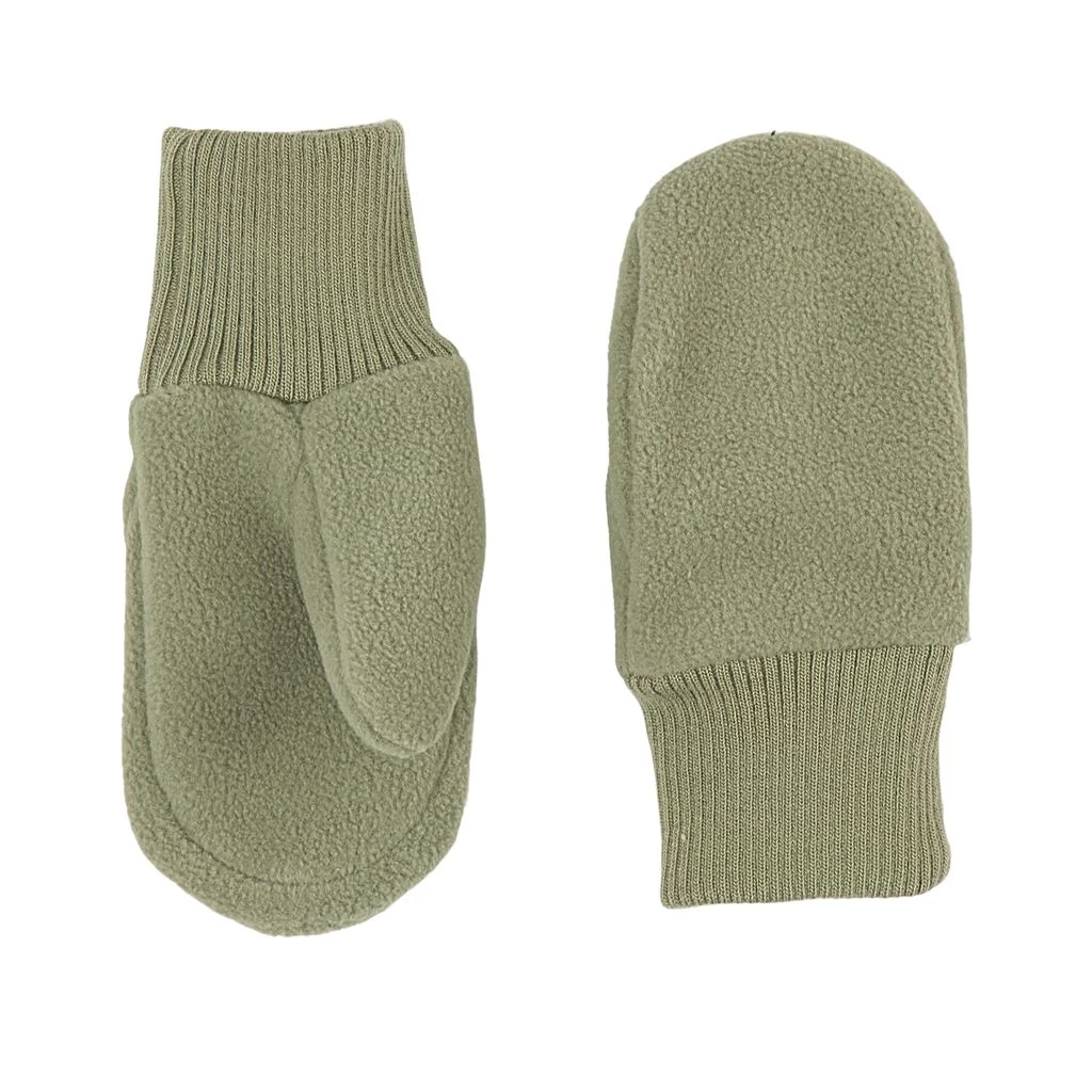 Keep little hands warm. Green Livigno wind fleece mittens by Kuling. The wind fleece mittens have ribbed cuffs.