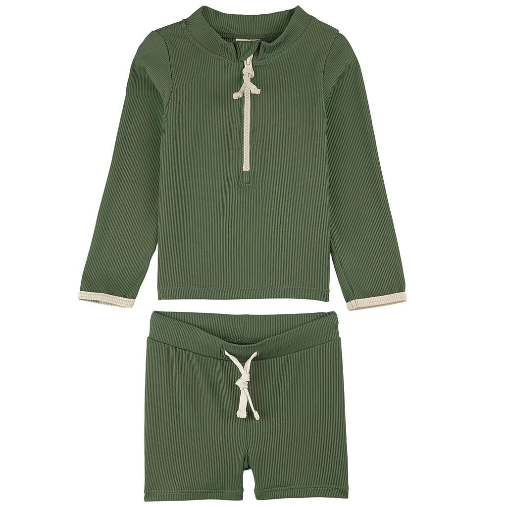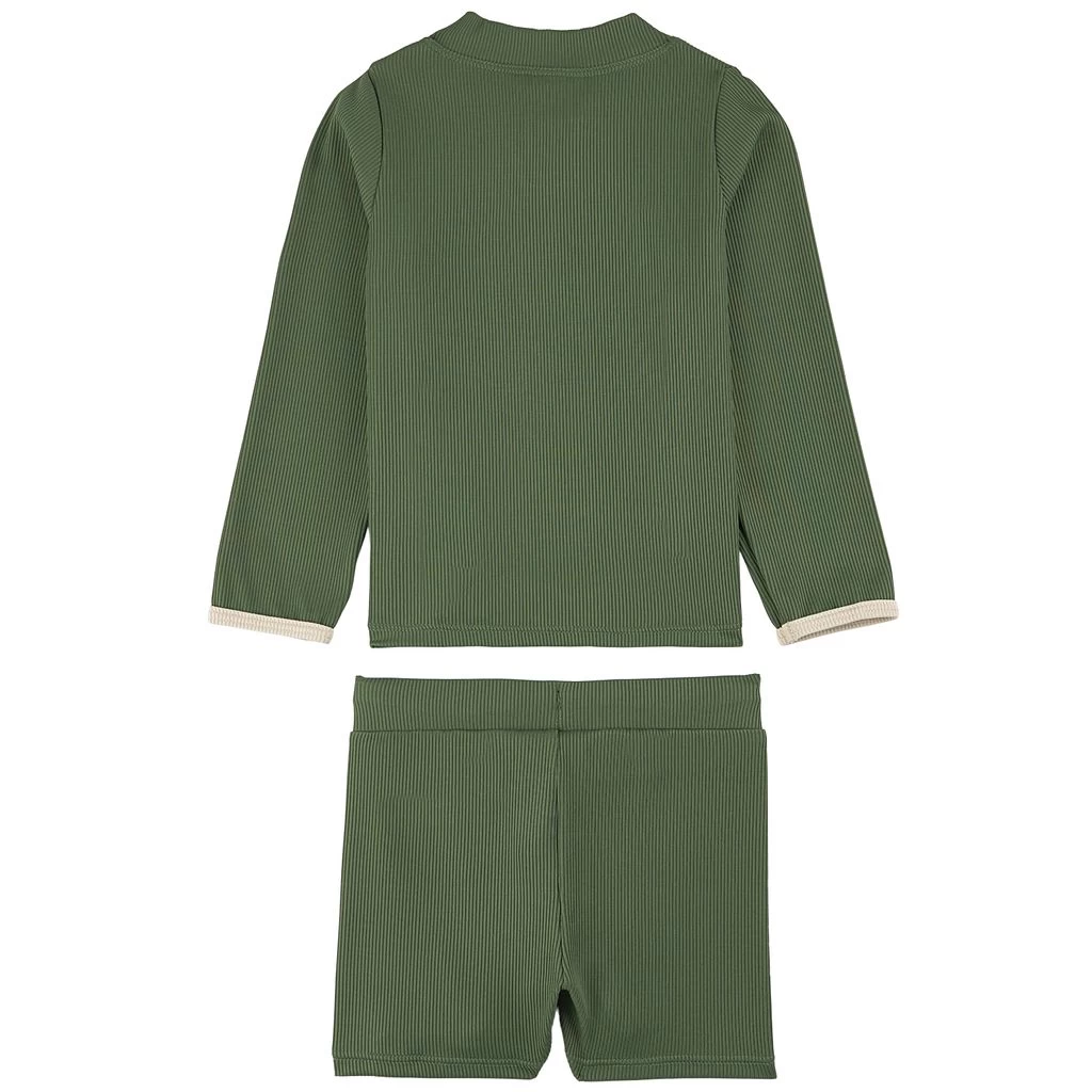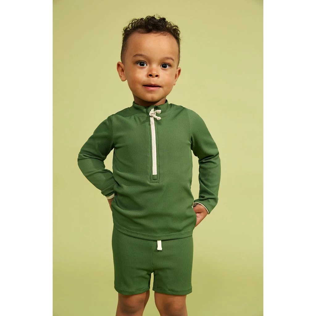 Perfect for some fun on the beach. Green Madagaskar Rashguard Set by Kuling. The Rashguard Set has a stretchy, quick-drying material.