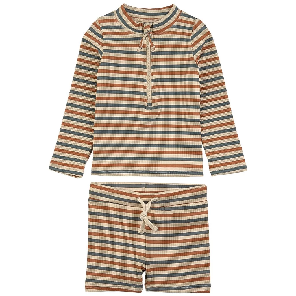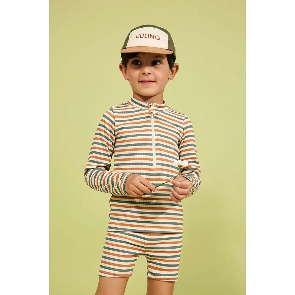Perfect for some fun on the beach. Cream Madagaskar Rashguard Set by Kuling. The Rashguard Set has a stretchy, quick-drying material.