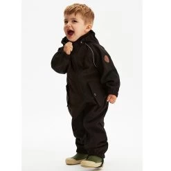 Get ready for outdoor adventures. Green New Haven baby coverall by Kuling. The baby coverall has warm padding. It has a detachable hood with a faux fur pom-pom, a double zip closure at the front, a chest pocket, elasticated cuffs, adjustable, detachable silicone foot loops and a reflective detail for visibility.