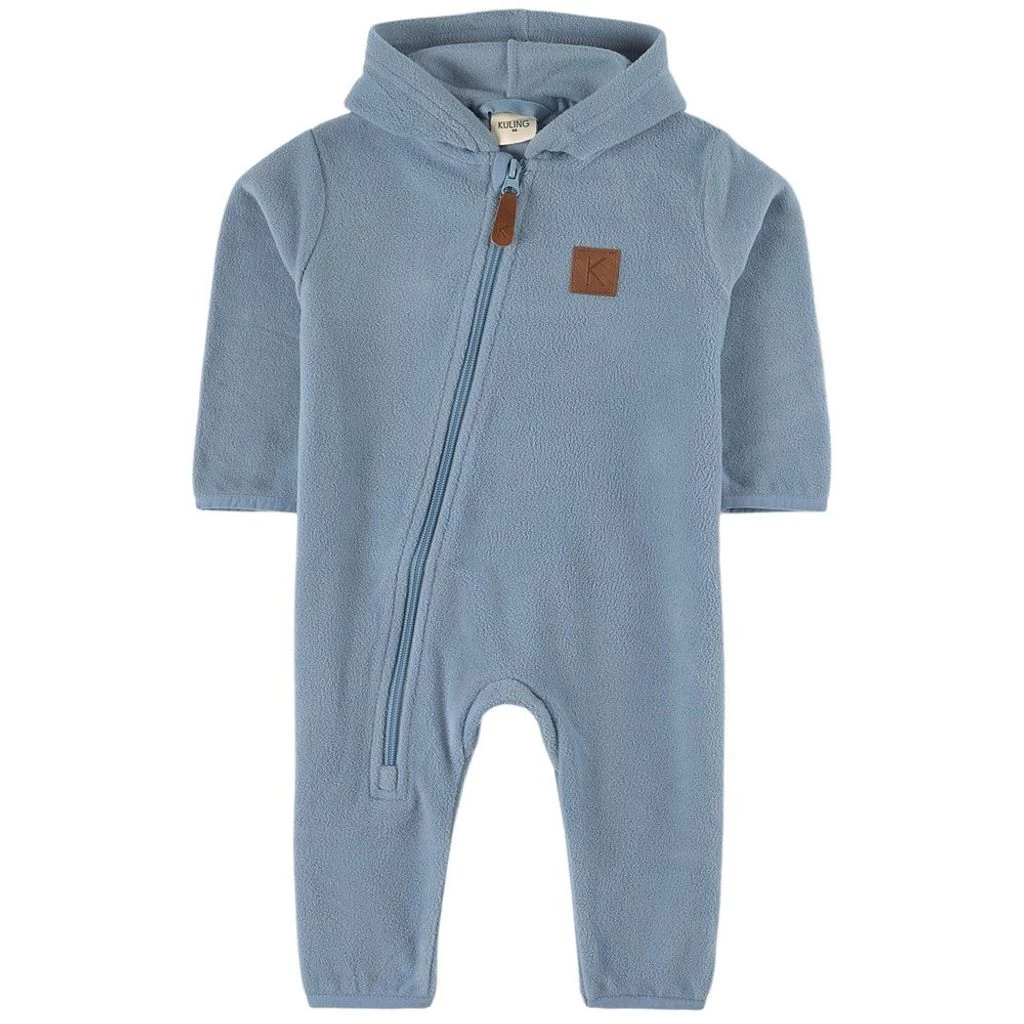 Northpole fleece onesie by Kuling. The fleece onesie has an asymmetrical zip closure with chin guard at the front. It has a logo applique at the front, elasticated cuffs and a fixed hood.