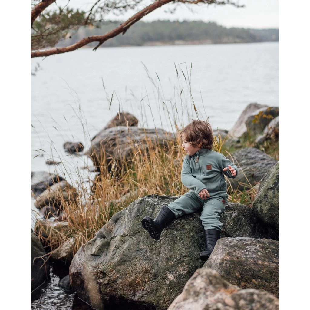 Keep warm with comfy fleece. Green Northpole fleece pant by Kuling. The fleece pant has an elasticated drawstring waist. It has two front pockets.