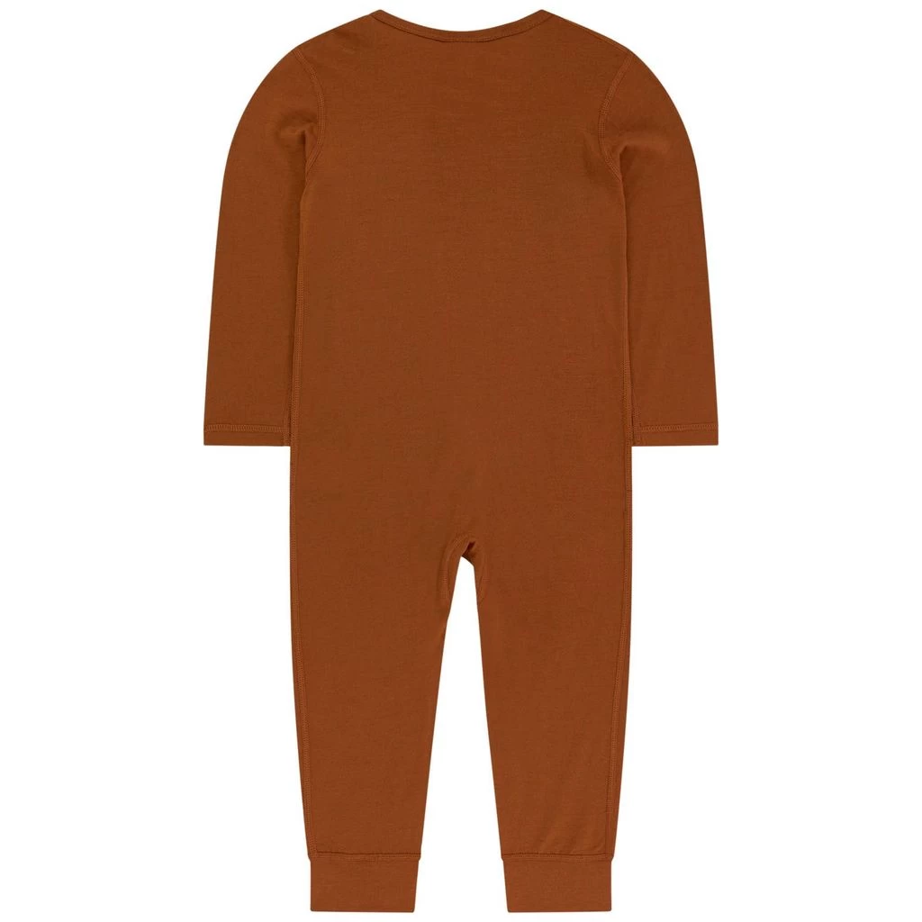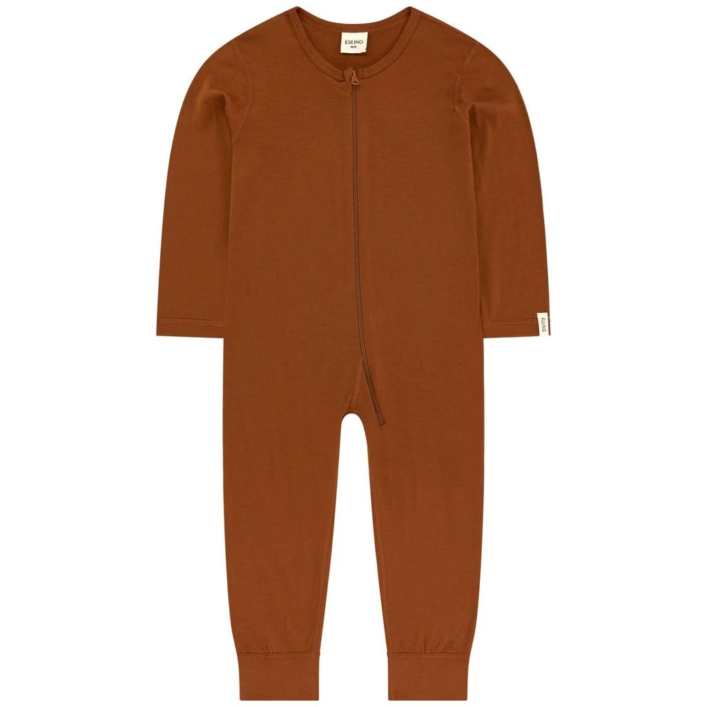 Brown one-piece by Kuling. The one-piece has a zip closure at the front. It has ribbed cuffs at the leg ends.