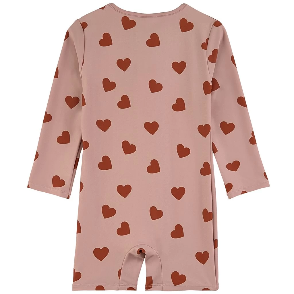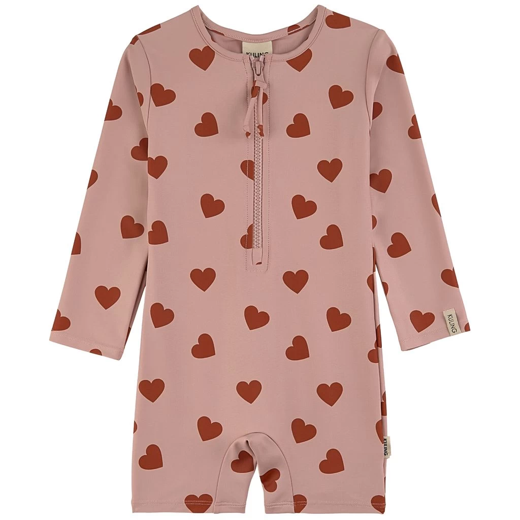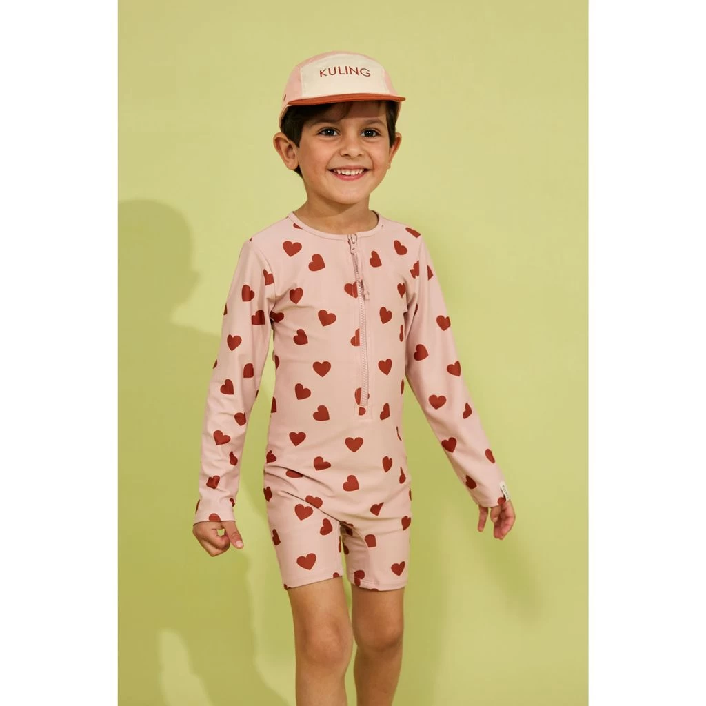 Perfect for some fun on the beach. Pink Paros one-piece rashguard swimsuit by Kuling. The one-piece rashguard swimsuit has a stretchy, quick-drying material.