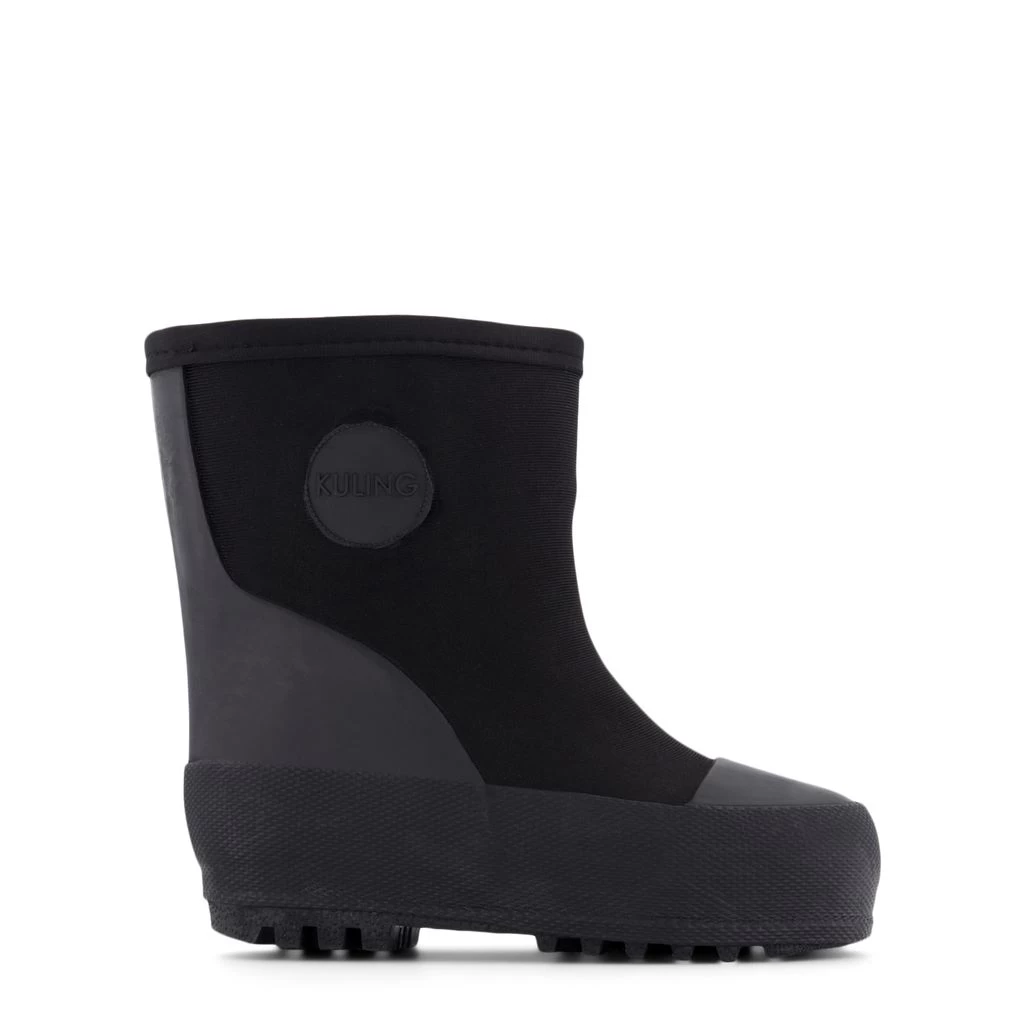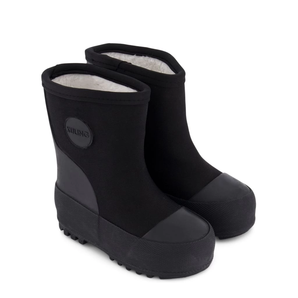 Black Quebeq boots by Kuling. The boots have soft faux fur lining. They have a reinforcement at the toe and heel, a rubber toe cap, a removable, faux fur insole and a grippy non-slip sole.