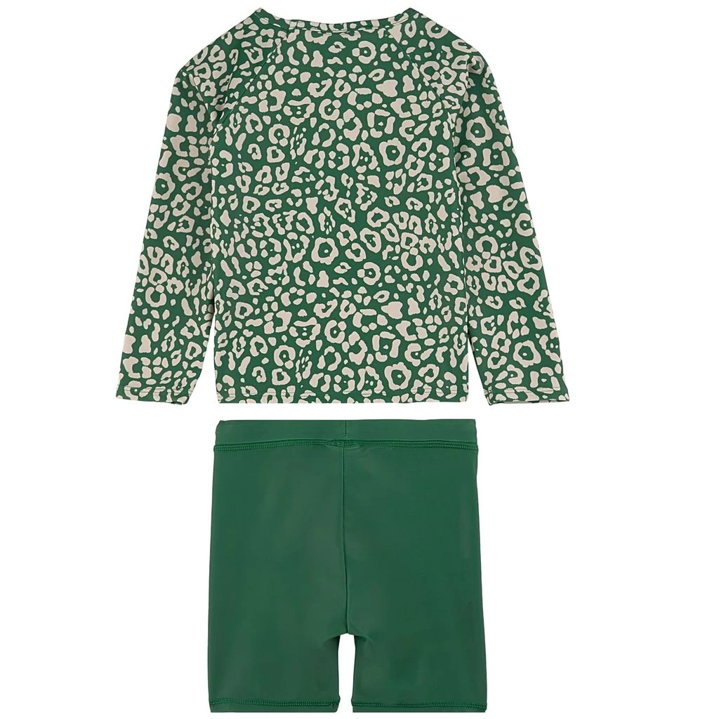 Perfect for some fun on the beach. Green Rhodes Rashguard Set by Kuling. The Rashguard Set has a stretchy, quick-drying material.