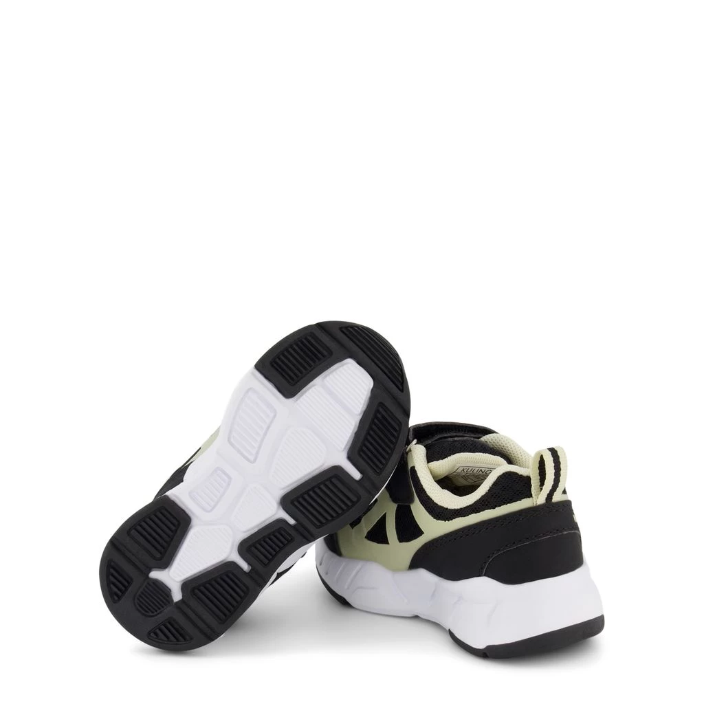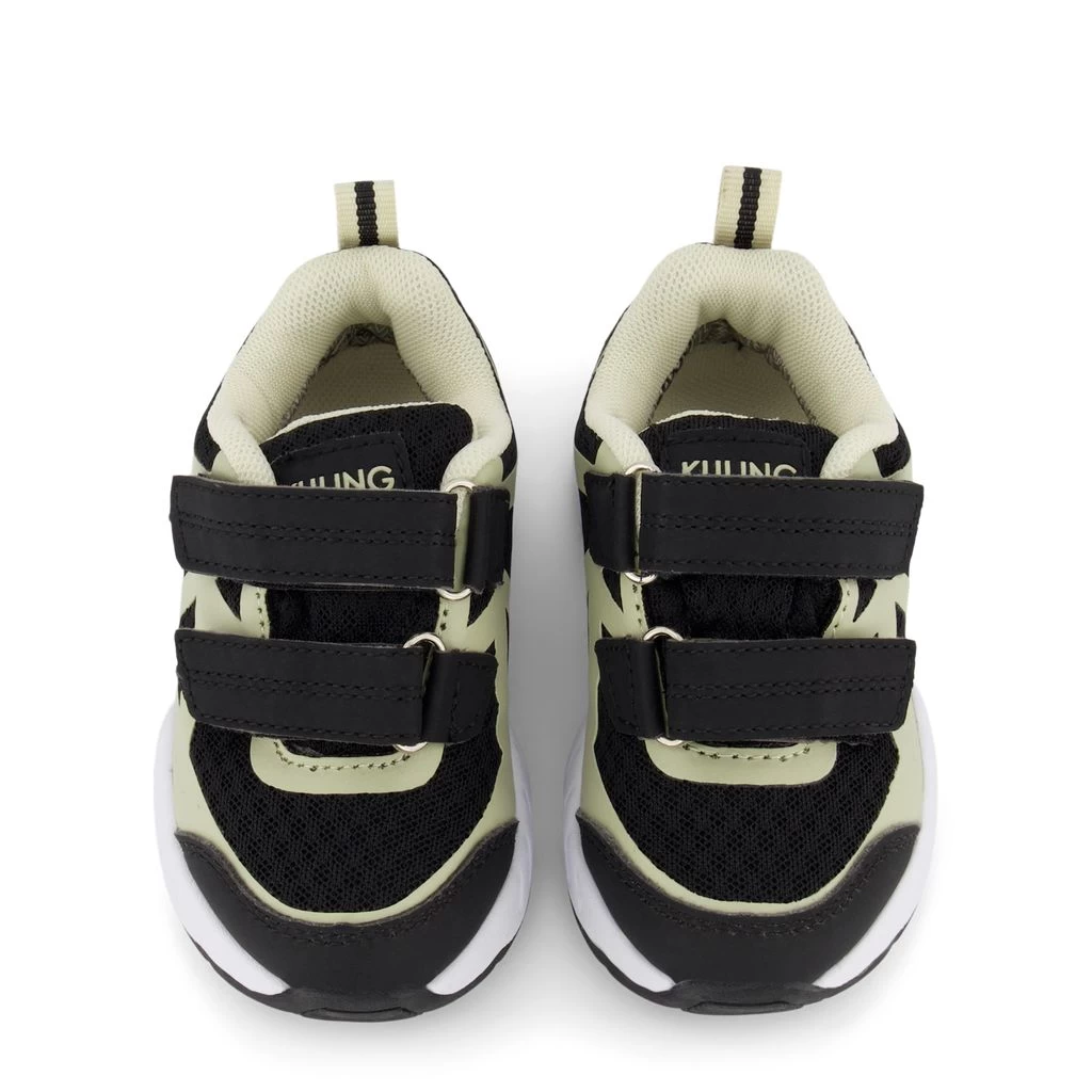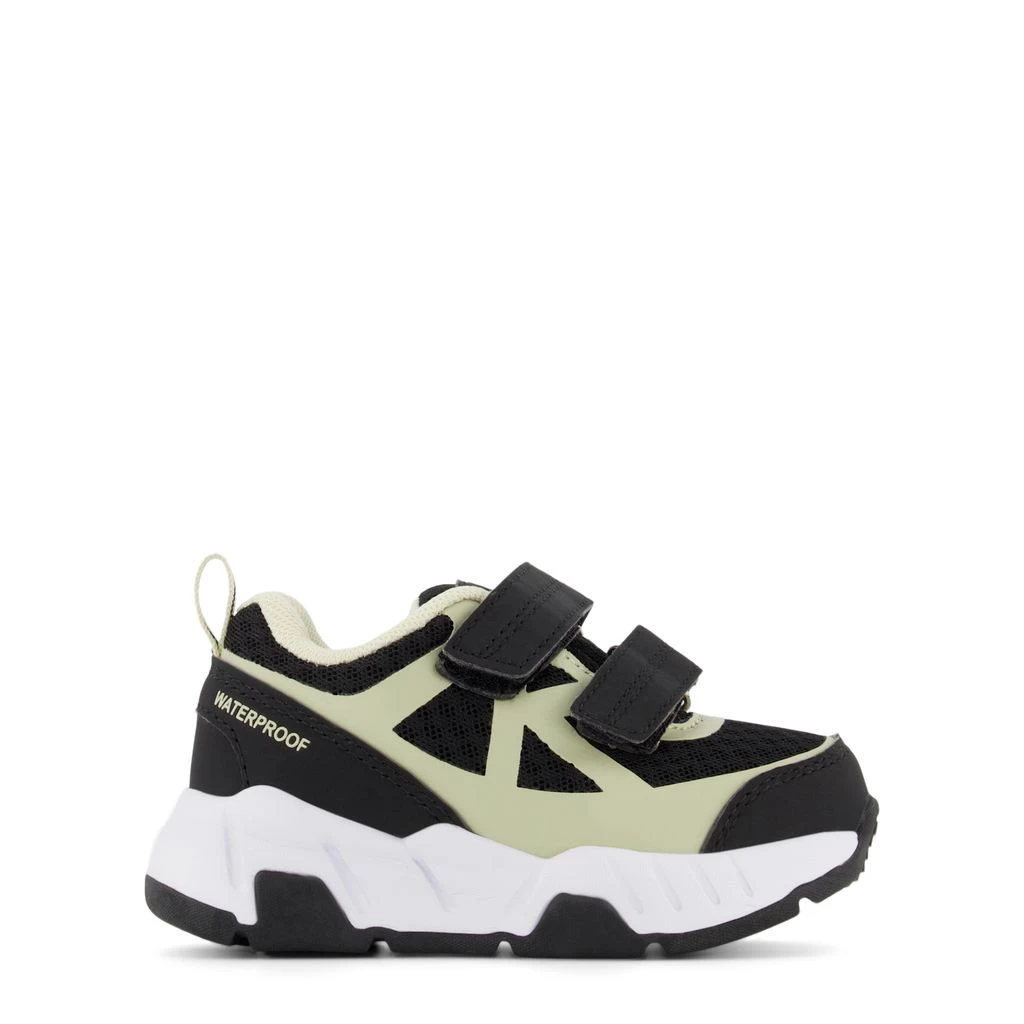 These sneakers are for adventurous kids!. Black Seattle trainers by Kuling. The trainers have a waterproof mesh upper. They have a padded collar, a velcro fastening for easy on and off, a pull-tab at the heel, a cushioned insole and a non-slip sole.