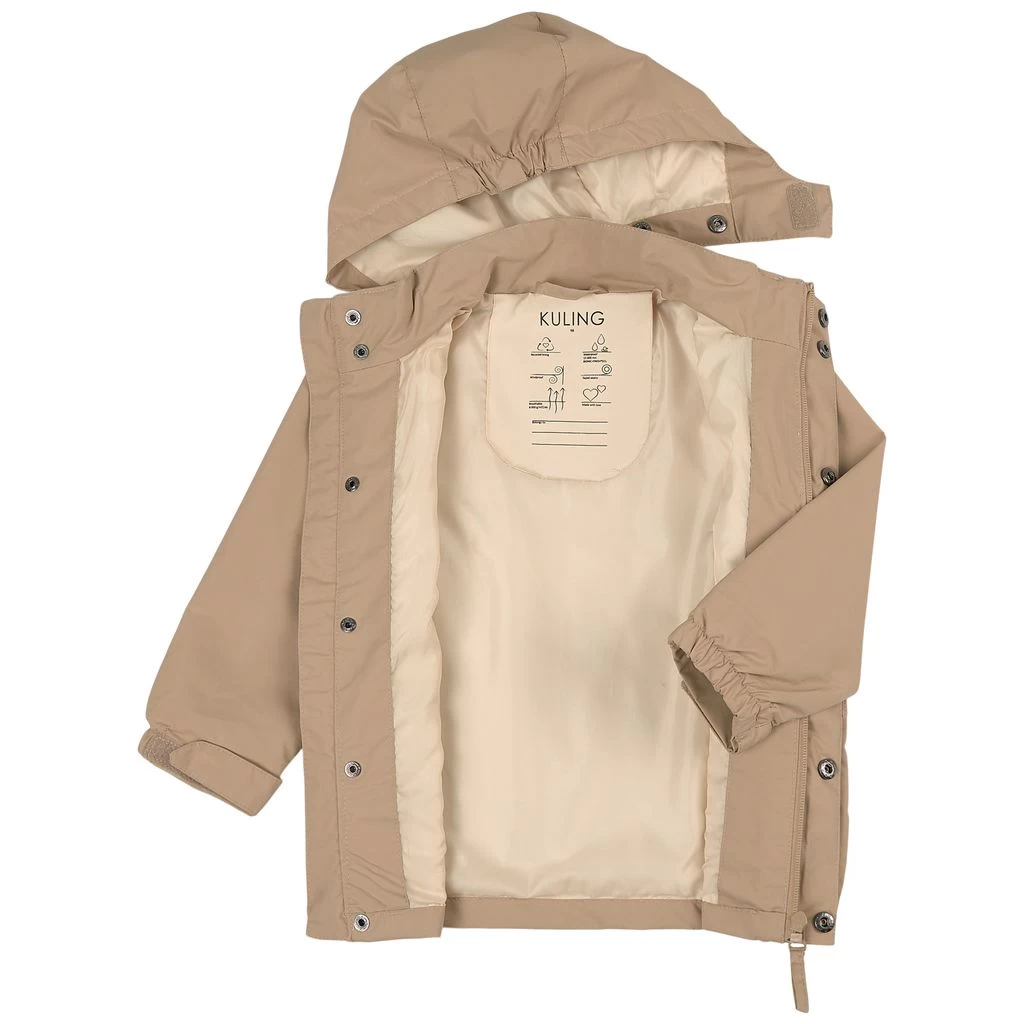 Get ready for outdoor adventures. Beige Stockholm jacket by Kuling. The jacket has taped seams. It has a YKK® zipper at the front, a detachable hood, adjustable cuffs with a velcro closure, two front pockets and reflective details for visibility.