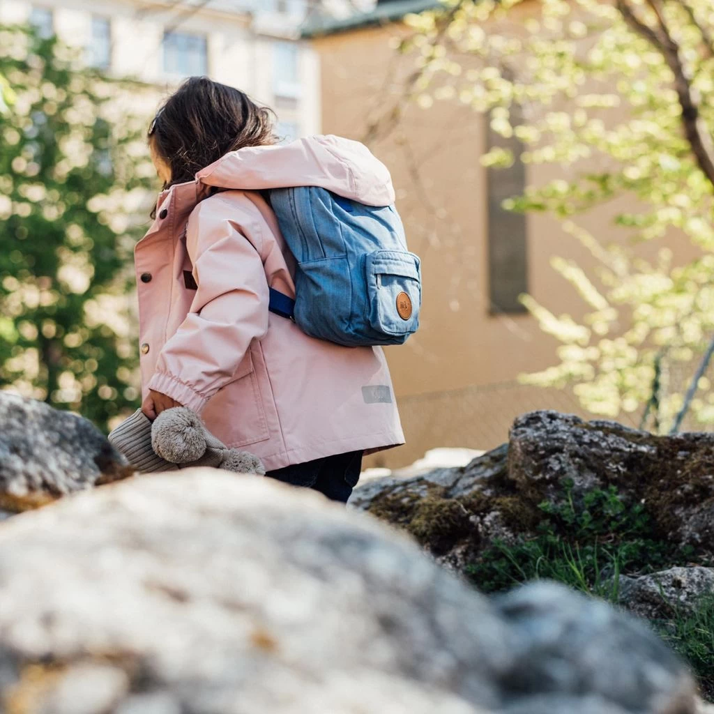 Pink Stockholm shell jacket by Kuling. The jacket has taped seams. It has a detachable hood, a YKK® zipper at the front, two front pockets, adjustable cuffs with velcro closures and reflective details for visibility.