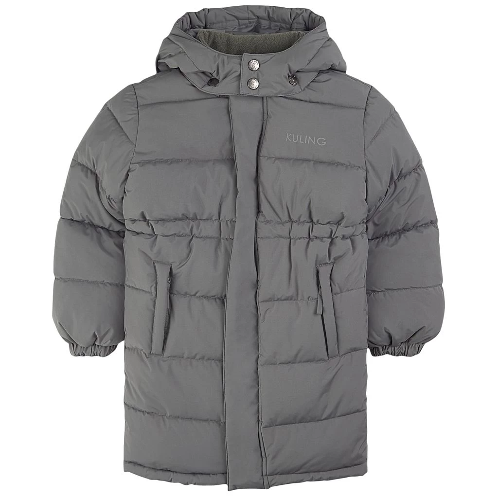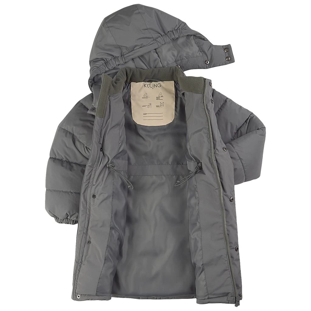 Be warm and comfy on winter adventures. Green Syracuse puffer jacket by Kuling. The jacket has a knee length design. It has warm padding, a detachable hood, a zip closure at the front, an adjustable waist, two front pockets and elasticated cuffs.