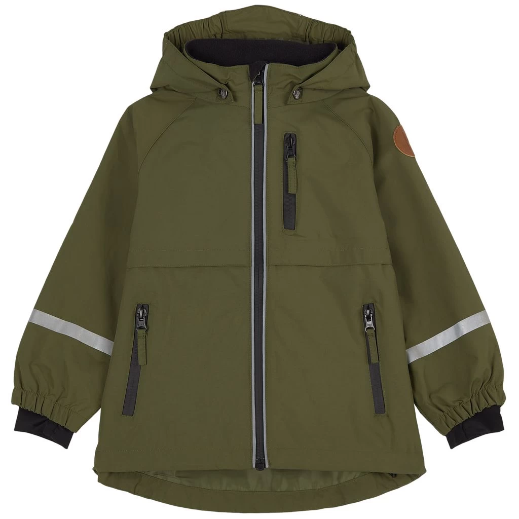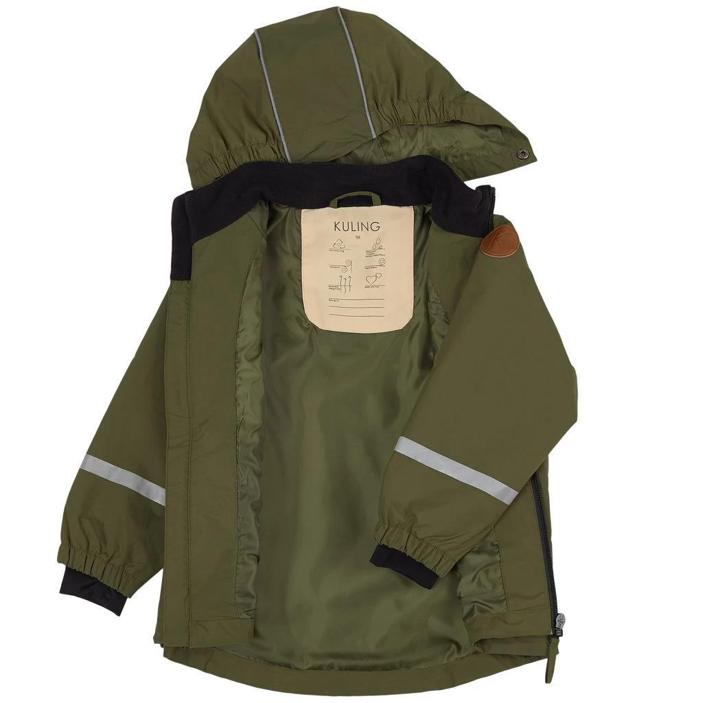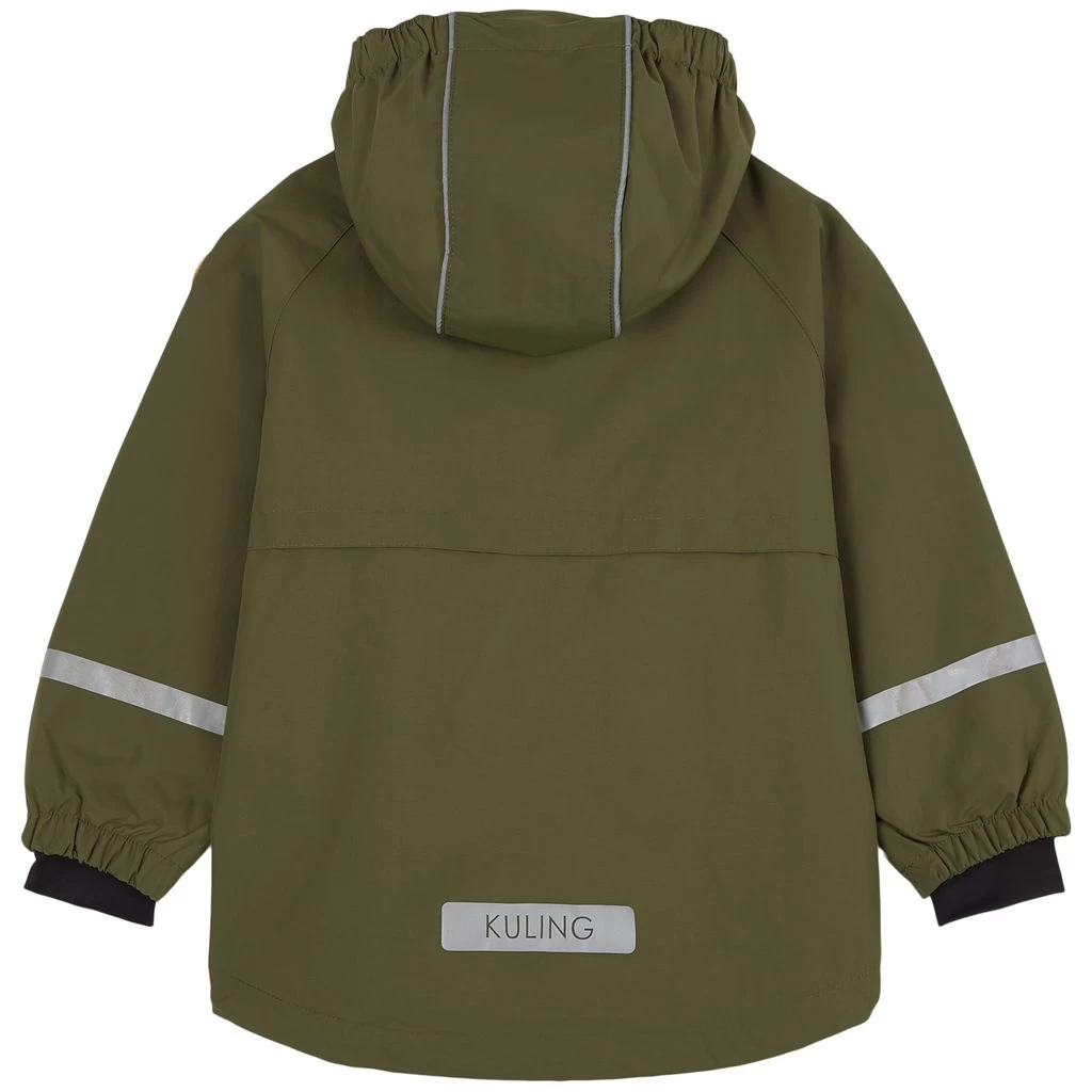 Get ready for outdoor adventures. Green Trysil shell jacket by Kuling. The jacket has taped seams. It has a zip closure at the front, a detachable hood, ribbed cuffs, three front pockets and reflective details for visibility.