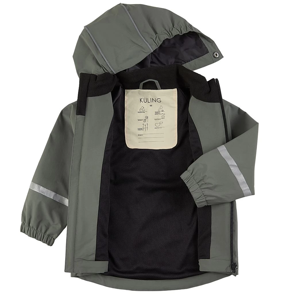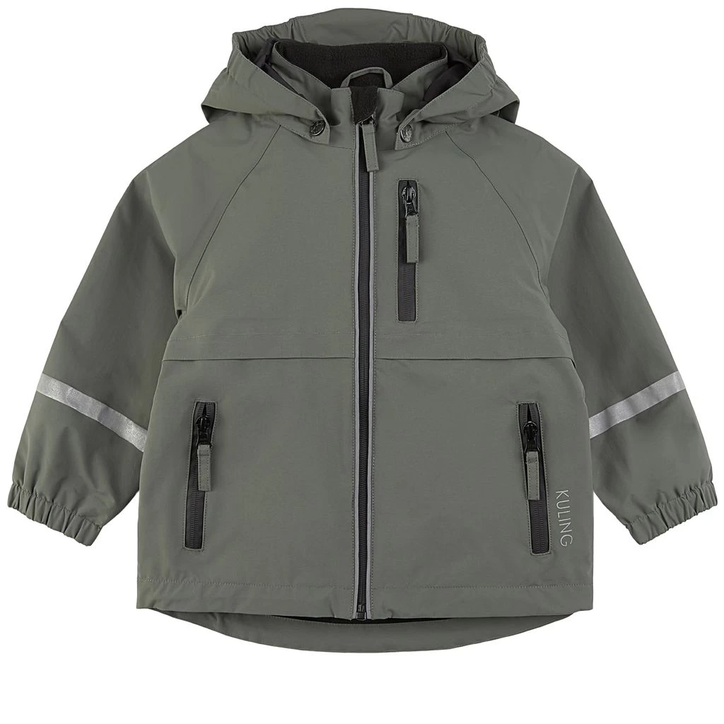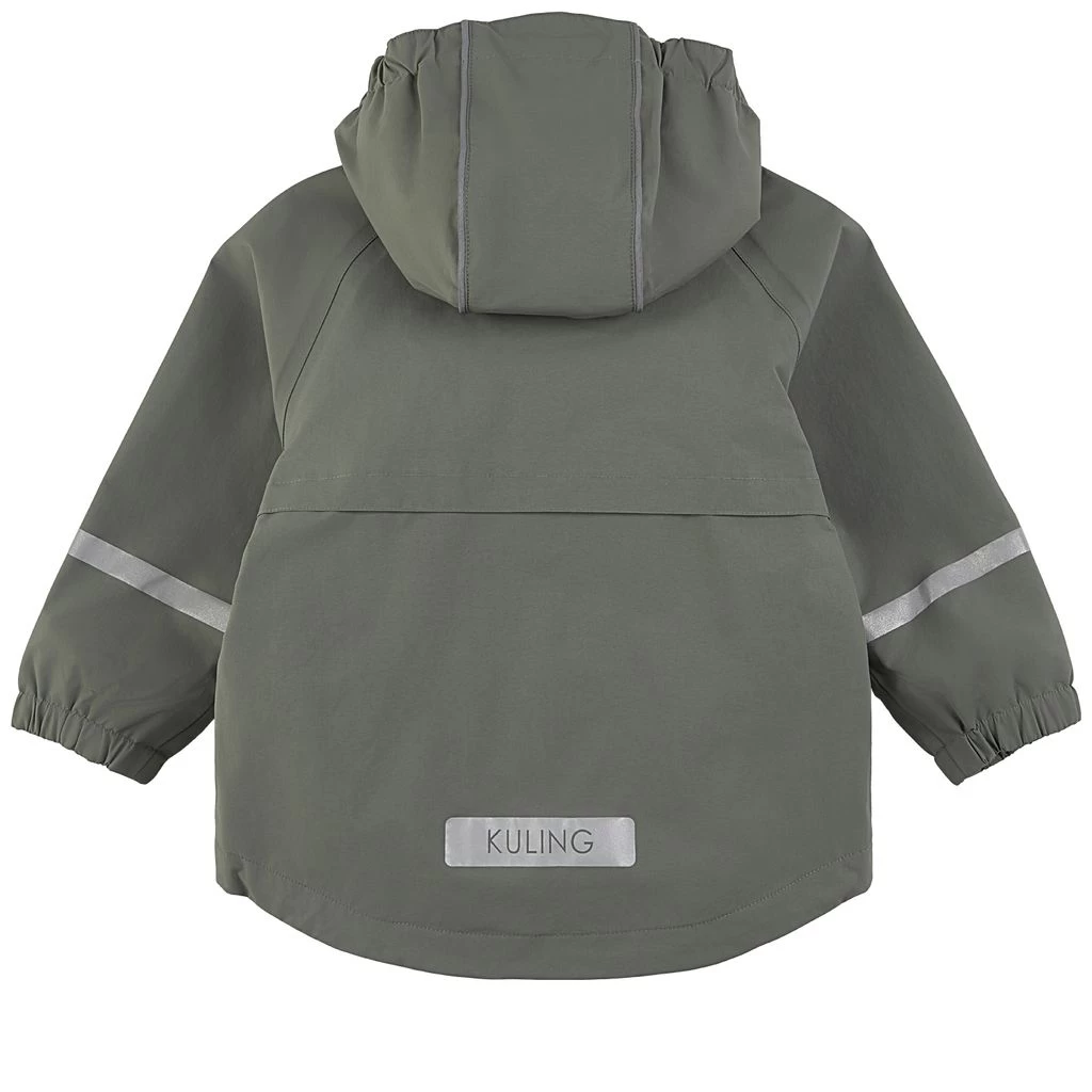 Get ready for outdoor adventures. Green Washington shell jacket by Kuling. The jacket has taped seams. It has a detachable hood, a zip closure at the front, adjustable cuffs with a velcro closure, one chest pocket, two front pockets and reflective details for visibility.