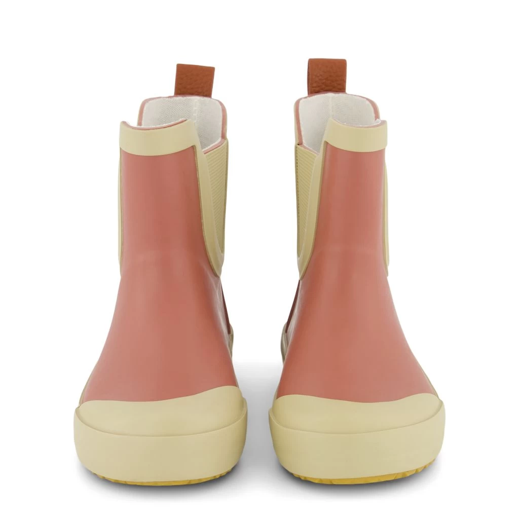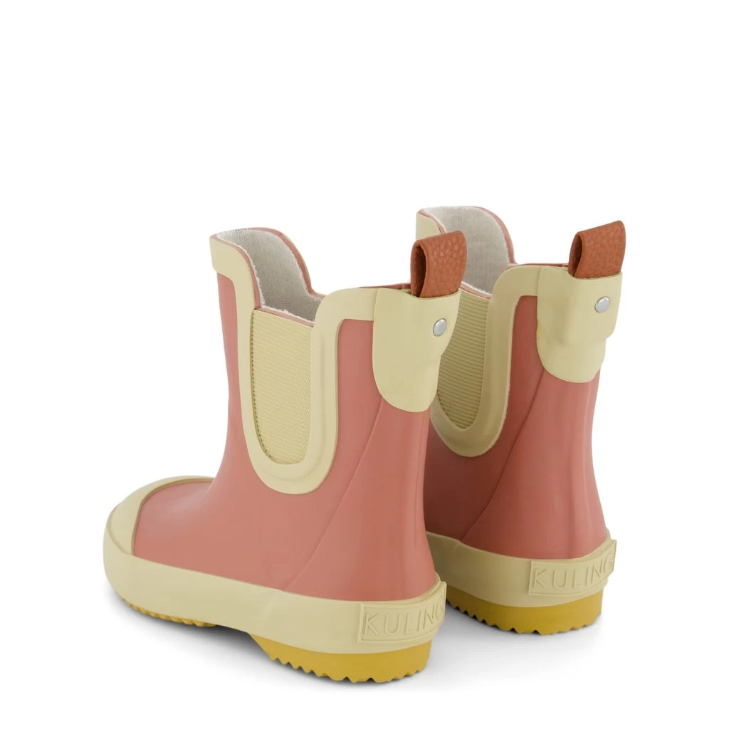 Time to jump through puddles. Pink Wells rain boots by Kuling. The boots have welded seams. They have a rubber upper, a bonded lining, a pull tab at the back, removable insoles and a non-slip sole.