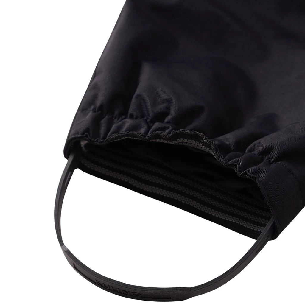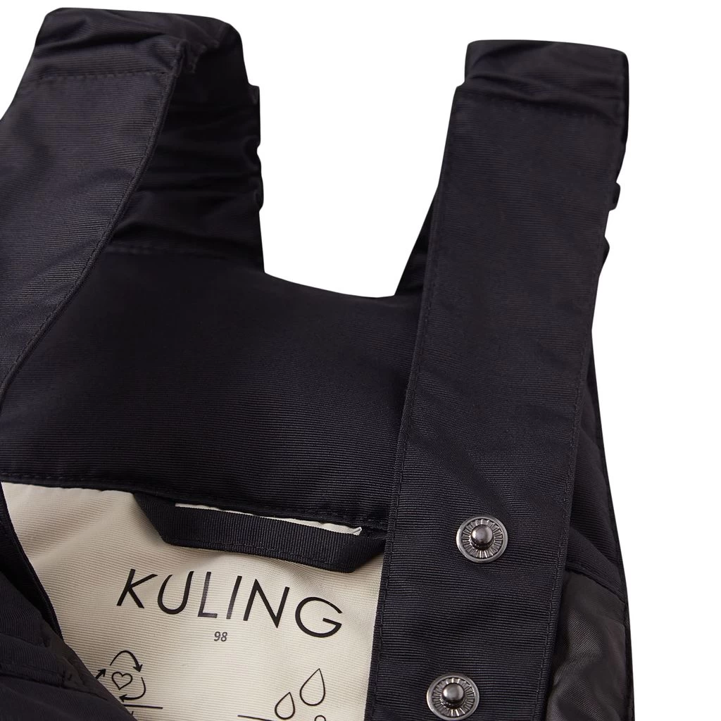 Be warm and comfy on winter adventures. Black Whistler winter pants by Kuling. The winter pants have taped seams. They have adjustable, elasticated shoulder straps, a zip closure at the front with a button closure, an elasticated waist, elasticated cuffs, detachable, adjustable silicone foot loops and reflective details for visibility.