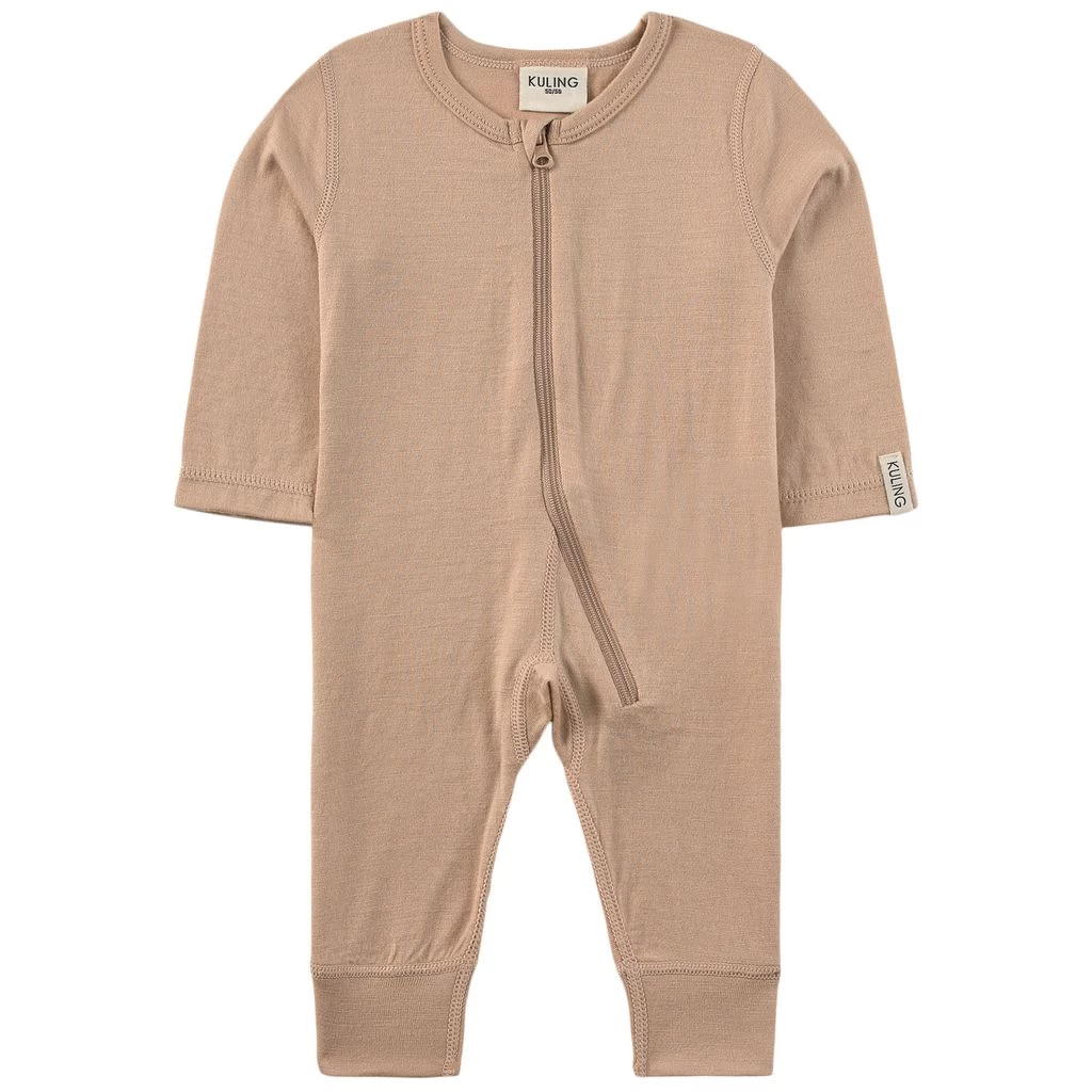 Beige one-piece by Kuling. The one-piece has a zip closure at the front. It has ribbed cuffs.