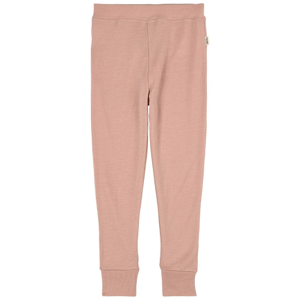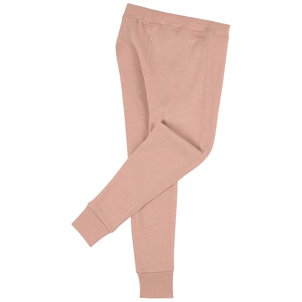 Keep little legs comfy. Pink wool pants by Kuling. The wool pants have an elasticated waist. They have ribbed cuffs.